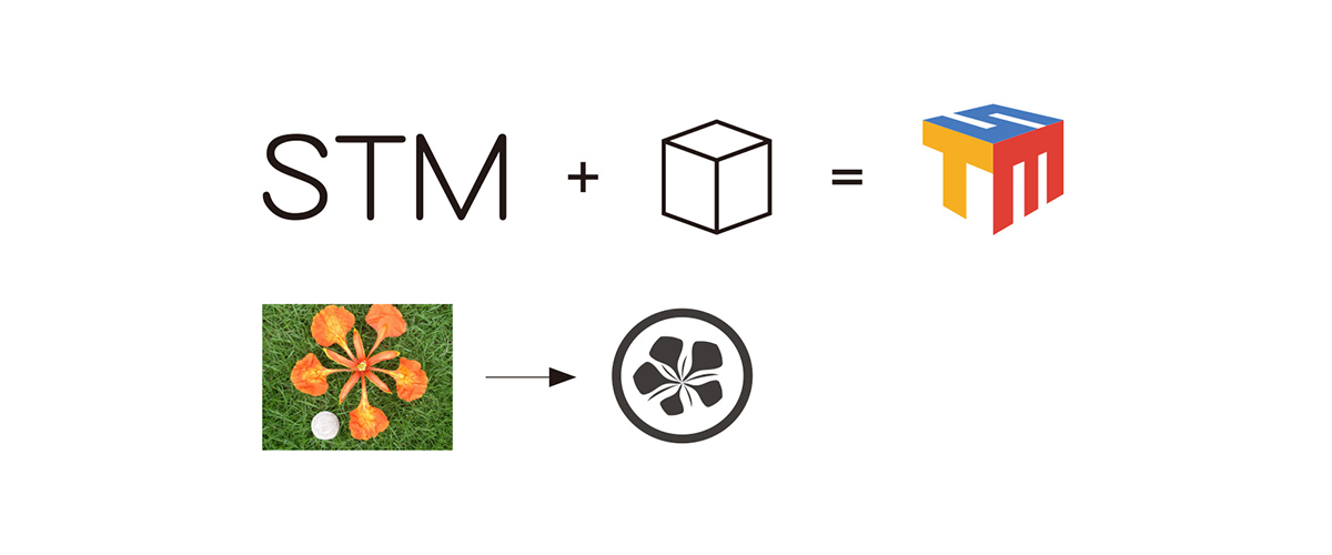 - 將STM 三個英文字母轉化成立方體結構的三個面:上面、正面、右側面, 以包浩斯現代主義美學的內在精神,呼應STM 中心追求「創意、改革、 務實、執行力」的特性。立方體設計遠看與學士帽造型相似,亦可增添STM 中心附屬於「大學」機構的視覺形象趣味。